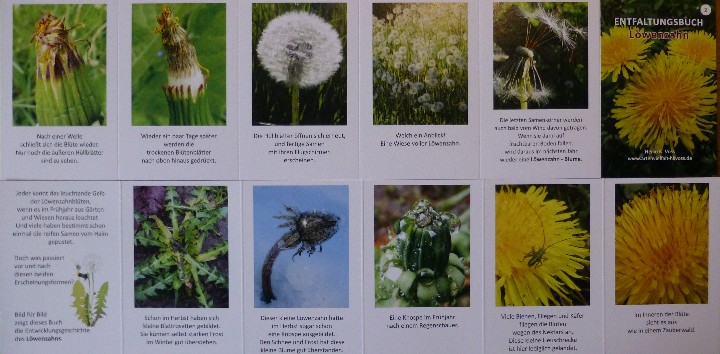 Um die Lebens- und Entwicklungszyklen verschiedener Tiere und Pflanzen in einem handlichen Format zu präsentieren, habe ich zwölfseitige Leporellos erstellt. Mit ihrem Format, den aussagekräftigen Bildern und den kurzen, prägnanten Texten eignen sich die Entfaltungsbücher hervorragend zur Naturbildung von Vorschul- und Grundschulkindern.